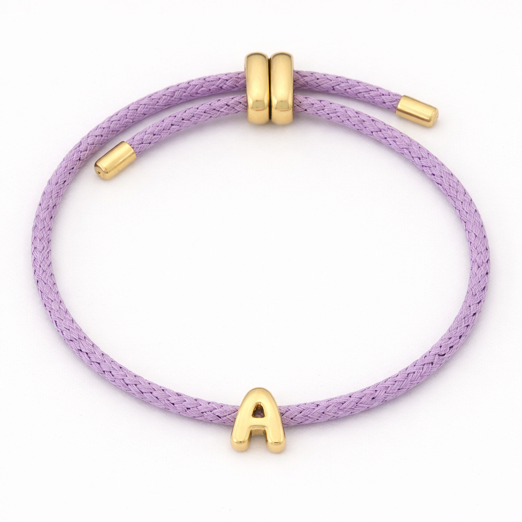 Pulsera Ajustable Lila + Letra a escoger