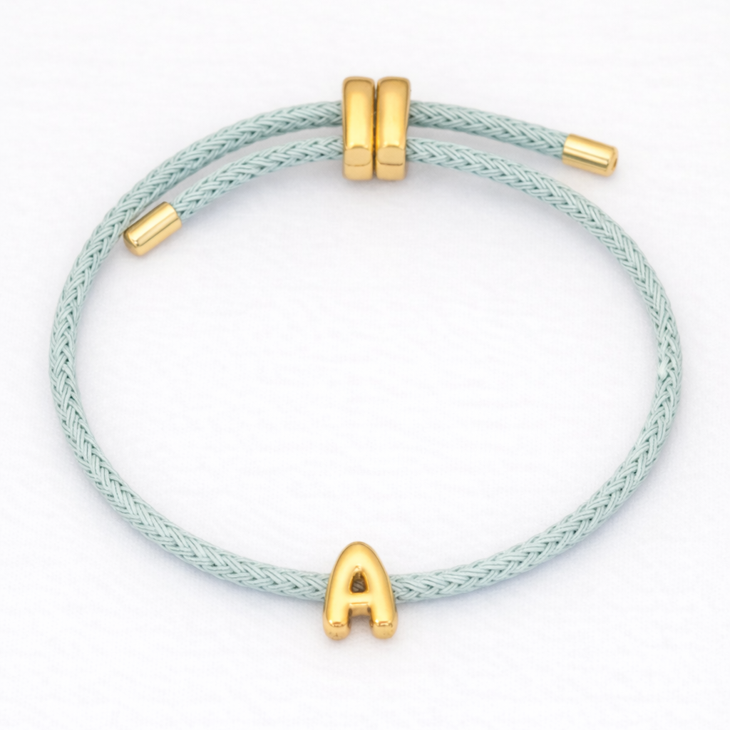 Pulsera Ajustable Celeste + Letra a escoger